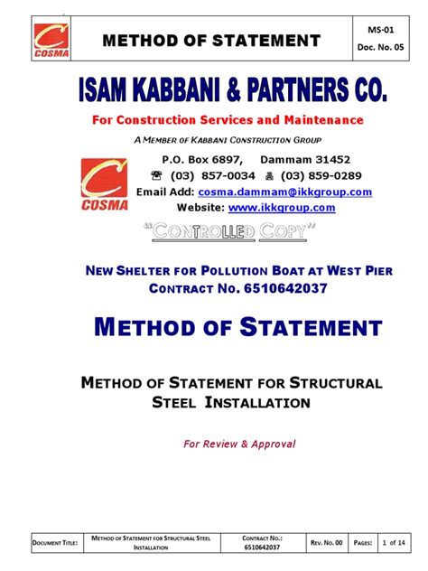 Download Method Statement For Steel Frame Epub